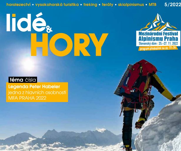 Od 10. listopadu 2022 je distribuováno festivalové č.5 časopisu lidé&HORY ročník 2022. Oproti ostatním číslům letošního ročníku je toto číslo rozšířeno o 8 stran především proto, že jsou na nich představeny informace o Mezinárodním festival alpinismu Praha 2022. Zmíněny jsou poslední výstupy Simona Messnera (str.10) a Rogera Schäliho (str.12). ... celý článek