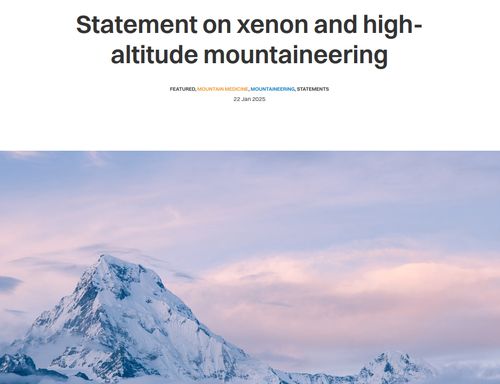 Lékařská komise UIAA (Mezinárodní federace horolezeckých svazů) vydala stanovisko, v němž se vyslovuje proti používání plynu xenon, který začala poskytovat jistá agentura klientům ke zkrácení výstupu na Mount Everest. Dle lékařské komise UIAA neexistuje žádný důkaz, že dýchání xenonu zlepšuje výkon v horách, a nevhodné použití může být nebezpečné. ... celý článek
