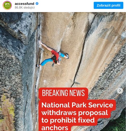 Návrh na zákaz lezeckých nýtů v národních parcích v USA stažen