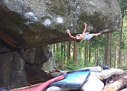 Po úvodním skoku následuje silový traverz po stiscích s nejistým závěrem. Bouldr zabral cca 8 výjezdů. ... celý článek