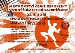 Srdečně zveme všechny zájemce na sobotu 23.06.2018 do Brna, kde se bude konat Mistrovství ČR dětí a mládeže v lezení na obtížnost. Připraveno bude 10 cest různé obtížnosti. ... celý článek