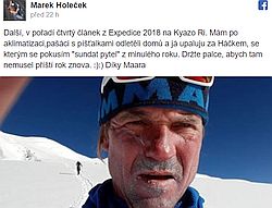 Nová cesta Máry Holečka a Zdeňka Háka na Kyazo Ri (6186 m) v Nepálu nese název "Výpadek rozumu" má převýšení 1200 m a lezeckých 1600 m. K obtížím Mára uvedl, že to bylo za M6, WI 4+, 3+UIAA, ED+ alpským stylem. ... celý článek