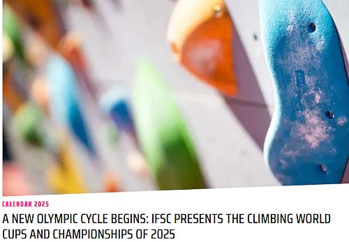 Mezinárodní federace sportovního lezení (IFSC) představila kalendář závodů na rok 2025, který obsahuje 12 světových pohárů, včetně bouldrového závodu 6.-8. června v Praze, a pak ještě mistrovství světa v Jižní Koreji. ... celý článek