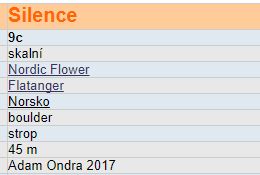 Adam Ondra si dnes zapsal nejtěžší cestu světa Silence 9c do deníčku na Lezci: "Start jako Nordic Flower, v místě pravotočivé zatáčky zcela přímo. Do rozpojení s NF 8b, pak 7B boulder, poslední koleno, 8C boulder, koleno, 8B boulder, spatny rest a 7C+ na závěr."... celý článek