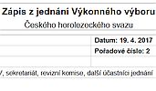 ČHS dnes zveřejnil zápis z 1. jednání nového výkonného výboru po valné hromadě. Na programu byla např. diskuse o prioritách činnosti v roce 2017, rozdělení gescí členů VV za jednotlivé činnosti ČHS, schválení úpravy Kvalifikačního řádu pro trenéry sportovního lezení a další body. ... celý článek