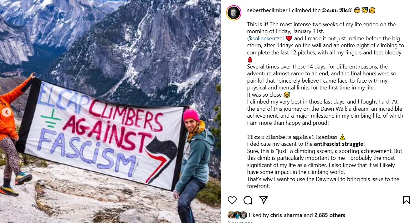 Belgický lezec Sebastien Berthe se stal druhým lezcem, který zopakoval 32délkovou cestu The Dawn Wall (9a) na El Capitana v Yosemitech. Poprvé ji vylezli Tommy Caldwell a Kevin Jorgeson v roce 2015 po šesti letech příprav. O rok později dal první a dosud jediné opakování Adam Ondra. Sebastien na Instagramu před chvílí zároveň oznámil, že výstup věnuje boji proti fašismu. ... celý článek