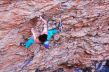 Adam přelézá cestu Stoking the Fire 9b Santa Linya
