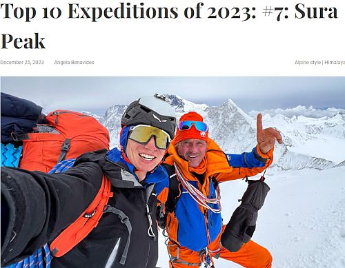 Mezinárodní portál Explorersweb zařadil mezi světových 10 top expedic roku 2023 prvovýstup Máry Holečka a Matěje Bernáta severozápadní stěnou nepálské šestitisícovky Sura Peak (6764 m). ... celý článek