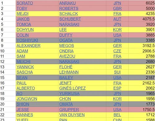 Prozatímní neoficiální žebříček 48 závodníků - včetně našeho Adama Ondry - a 48 závodnic v lezecké kombinaci (boulder a obtížnost), co se můžou ucházet o účast na olympiádě v Paříži na kvalifikačních závodech příští rok v květnu v Šanghaji a v červnu v Budapešti, zveřejnil web 8a.nu. Z těchto závodů se na olympiádu nominuje 10 mužů a 10 žen. ... celý článek