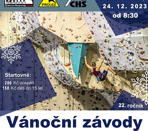 Chtěli bychom vás pozvat na vánoční závody 24.12. na naší stěně na Ruzyni v Praze. Závod začne od 8:30 a stěna bude otevřena do 14 hodin. Přijeďte si s námi užít sváteční pohodu a k tomu si zazávodit a zalézt. ... celý článek
