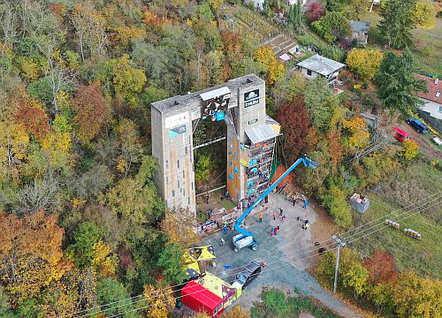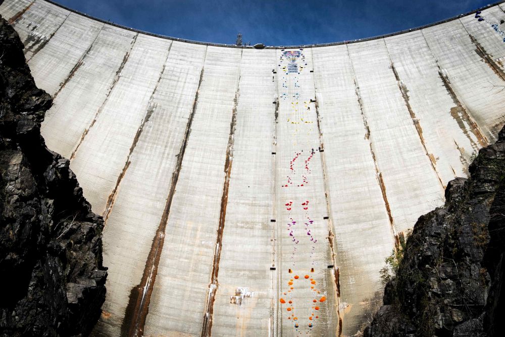 Závod v lezení vícedélek na 220m hrázi přehrady ve Švýcarsku
