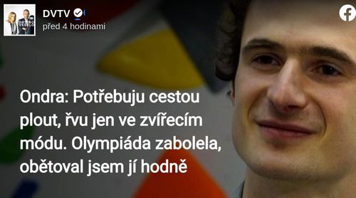 Rozhovor Martina Veselovského s Adamem Ondrou publikovala dnes DVTV. "Ondra: Potřebuju cestou plout, řvu jen ve zvířecím módu. Olympiáda zabolela, obětoval jsem jí hodně," upoutává na interview DVTV. ... celý článek