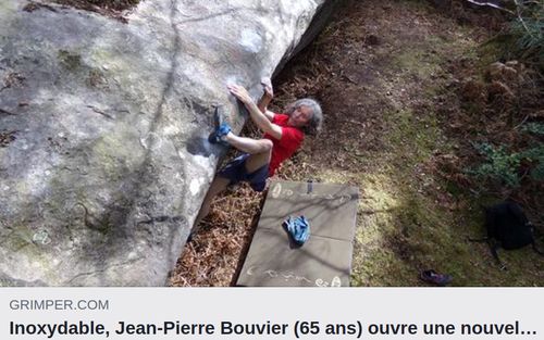 Pětašedesátiletý Francouz Jean-Pierre Bouvier přelezl ve Fontainebleau nový traverz Contre Courant, tam a zpět, s 60 kroky v obtížnosti 9A specifického traverzového hodnocení, které je měkčí než klasická bouldrová stupnice. Číslo 9A trav odpovídá zhruba obtížnosti cesty za 9a+ nebo boulderu za 8C(+). O přelezu informoval francouzský lezecký magazín Grimper. ... celý článek