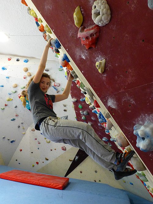 Mezi oběma místnostmi je možno prolézt, aniž by se lezec dotkl nohama země.