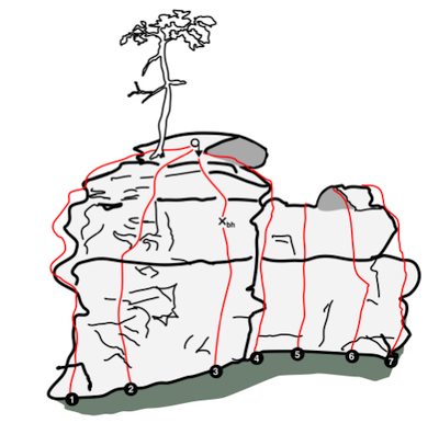 Nově upravená stěna Tank se nachází po proudu řeky od Sokolčí po naučné stezce. V mapě označena jako Mirkova skála.