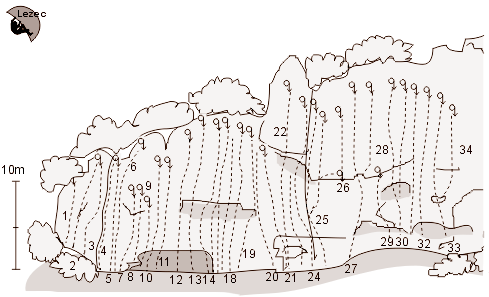 Lezení se hodně liší sektor od sektoru. Cesty v sektoru "Strapiombi" jsou krátké, ale silové a atletické po dobrých chytech. Téměř horizontální střecha ve stěně pod tímto sektorem je ještě kratší a vedou zde těžší cesty. Cesty v sektoru "Pilastro" jsou mnohem delší a vedou v kolmé až silně převislé skále, zatímco v sektoru "Brojon classico" je sklon až na cesty ve středu stěny kolmý a najdete zde tím pádem lehčí cesty.