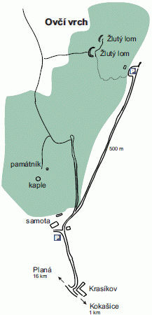 Ze silnice č. 201 (směr Konstantinovy lázně - Planá) za Kokašicemi uhnete za pivovarem (Krasíkov) doprava. Hned za domy se dáte polní cestou doleva. Na úpatí kopce je dům (dvakrát vpravo) cesta vede podél třešňového sadu až na loučku ke včelím úlům a ceduli zákaz vjezdu (les a vodní zdroj). Zaparkovat se dá na loučce. Ke skalám se dostanete malou pěšinou, která stoupá svahem ještě před včelíny a vede kolem oplocenky. Lom je pod hranou kopce a není příliš vidět.