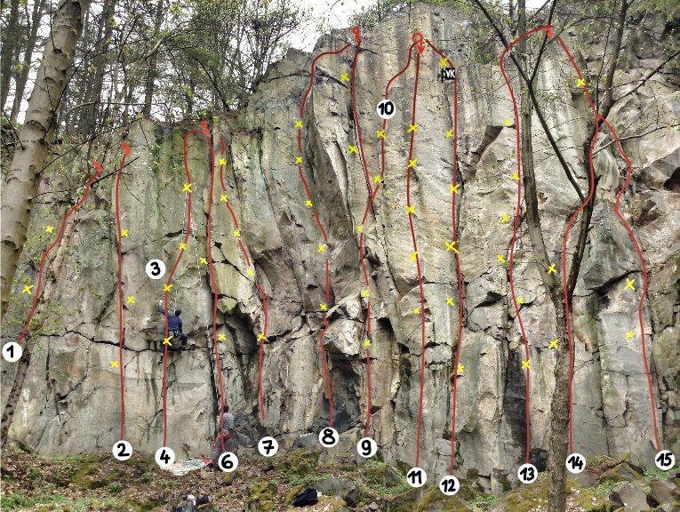 Leze se většinou podél spár, ale najdete zde i několik stěnových lahůdek jako je třeba c. Sépiová Kost.