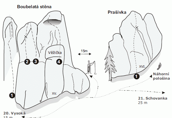Nevysoké, avšak o to krásnější stěny tvořené kompaktním sopečným tufem se nachází nedaleko Plzně. Lezení je po bouličkovitých chytech, poličkách a dírkách v převážně kolmých stěnách. Jištění se bude zdát napoprvé trochu pískovcově daleko, ale v zásadě je bezpečné. Přestože jsou stěny dosti kompaktní, užije se občas i smyčka. Spaní je možné na tábořišti pod kopcem. Skály jsou v přírodní reservaci a jsou skutečně hodně pěkný a romantický.