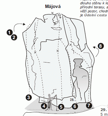 Bohrháky, kruhy a smyčky. Vklíněnce a friendy jsou zakázány. Lano stačí 60 m.
