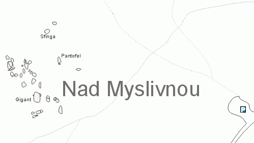 Zatím jen z části prozkoumaná oblast, která ale nabídne jistě mnoho zajímavých boulderů. Velké množství jich zde již zanechal Petr Resch (většina stávajících červených šipek)a Olda Low (dosti neznatelné modré šipky). Něco přidělal i M. Čermák, ale informace i jeho přelezech jsou dosti kusé. Jedná se z velké části o lezení po oblých hřbetech, kde se nejlépe uplatní umění lezení na tření. První kámen Sfinga je zároveň důležitým orientačním bodem od něhož na jihozápad se rozprostírá zmíněná oblast Nad Myslivnou. S několika nádhernými gigantickými bloky.