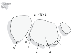 Bouldery jsou na návrší nad ubytovacím zařízením pro školy v přírodě. El Playa je samostatné seskupení vpravo z přístupové cesty.