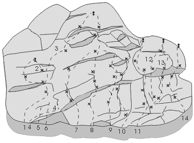 Relativně nově objevené skály pojmenované podle vrcholu na jehož nejvyšším bodě se nachází několik sektorů vytvořených opuštěným lomem, díky čemuž je skála poněkud lámavá (dávejte bacha!!!). Skály jsou značně převislé a NIKDY nezatékají. Dá se zde lézt za KAŽDÉHO počasí. Má to i svou nevýhodu, povrch skály je jakoby zaprášený. Čím více se zde poleze, tím více bude oblast hezčí... Sportovní hodnotu oblasti zvyšuje několik těžkých cest v devátém až desátém stupni a i několik velmi těžkých boulderů.