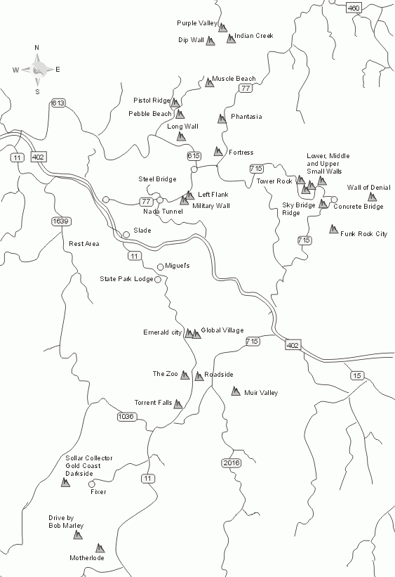 Jedny z nejlepších skal na východě Spojených států Amerických. Stěny v Red jsou tvořeny velmi pevným pískovcem,( leze se z magnéziem!). Je hodně chytovatý, stěny jsou obvykle formovány do podkovovitých převislých amfiteátrů zvaných místními hollars. Pro styl lezení zde se ustálil termín marathon pro předloktí. Každá cesta to je sbírkou parádních ostrých chytů, kapes a kruhových oblých sklopených oblanů, kterými je právě pískovec charakteristický.