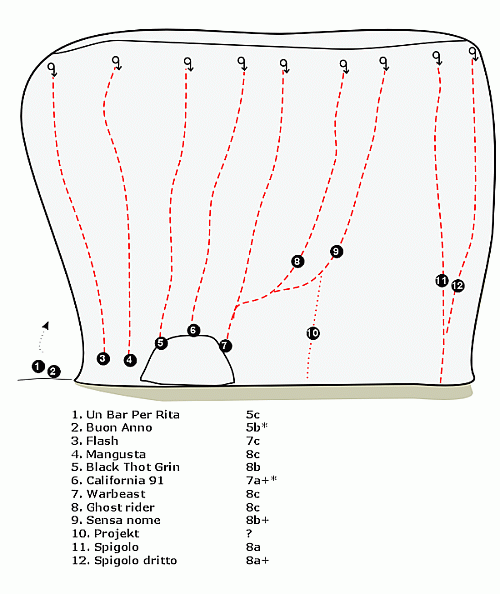 Super skály s přibližně 130 cestami nad stejnojmennou vesnicí. Lezení převažně v kolmých až mírně převislých stěnách vyžaduje dobrou techniku nohou a vytrvalost předloktí. Jinak je zde i spousta cest pro softmovery. V této oblasti bývá snad ještě více lidí než v Massone. Ze zajímavostí nelze nepřipomenout stáčírnu vína v Nagu...