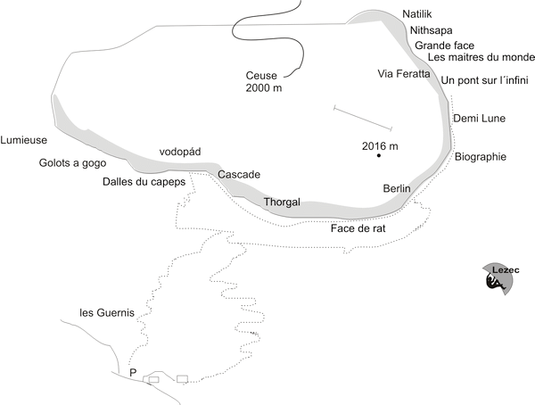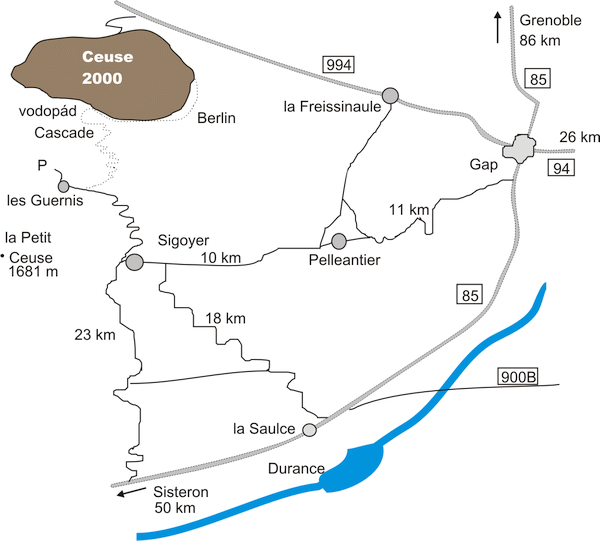 | Přístup | Z Gapu směr Sigoyer pak na Les Guerins. Zde zaparkovat a dusně do kopce.