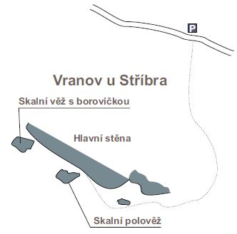 Autem do Vranova u Stříbra. Za tratí doleva směrem na chatovou oblast podél trati. Nejlepší je zastavit než vjedete do lesa. Zde nechte auto a můžete sestoupit dolů ze svahu k řece. Skály budete mít po pravé straně.