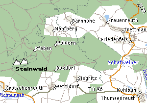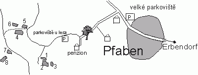 V lese v těsné blízkosti osady Pfaben nedaleko německého Marktredwitzu. Projedete vesnici a dáte se do leva na vidlicovitém rozcestí doprava a u lesa necháte auto. Ke skalám 15 až 20 min.