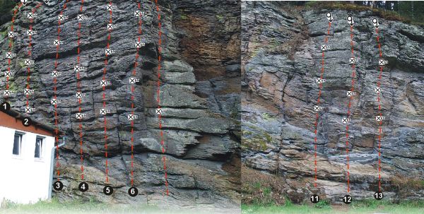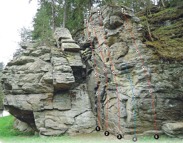 Židova Strouha na Lužnici u Bechyně. Skály - cesty a bouldry po obou březích Lužnice, Ferrata.