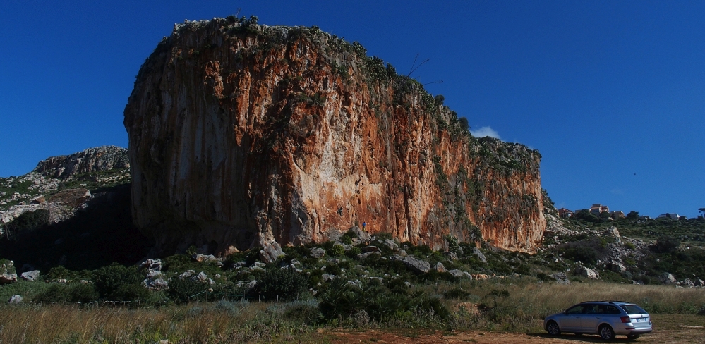 Je velmi jednoduchý. Do městečka Custonaci, pak jeďte dál jako k moři a na kruhovém objezdu doprava v výraznému skalnímu suku. Rocca di Cerriolo. Před ní u silnice je možnost zaparkovat a pakl jen asi 100m přes louku ke skále. Pokud jedete dále po této silnici, dojedete až k Never sleeping wall která je pod lomy na vápenec.