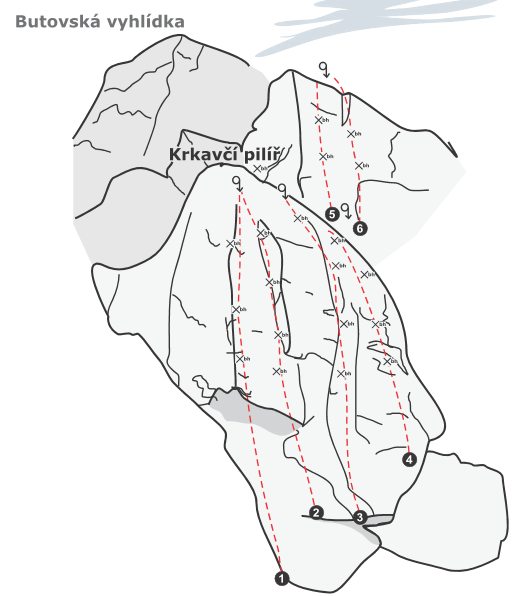4. Butovská vyhlídka (8 cest) - hlavní stěna v horní části