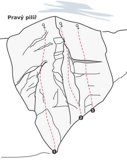 7. Pravá vyhlídka (3 cesty) - pilíř vpravo uprostřed svahu
