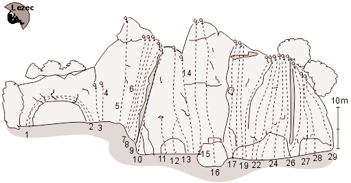 Pěkné skály, kde najdete přibližně kolem 29 cest od 5a do 7c+.