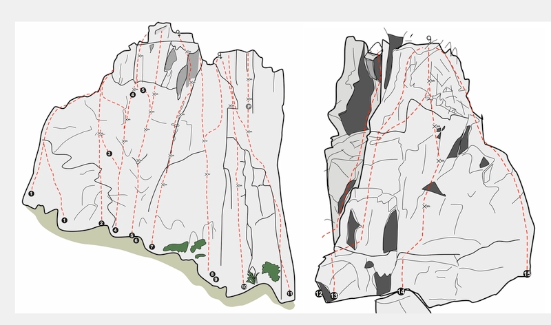Materiálem je (pevný a čistý) křemenec a najdete zde spíše lehčí cesty pro nenáročné lezce a trempy. V okolí najdete i pár kamenů vhodných pro bouldering. Mimo hlavní masiv (Hadí Královna), který spadá k jihovýchodu je kolem ještě několik pilířů, na které vedou další neevidované cesty, v nichž tu a tam můžete objevit i zajímavý směr hodný vylezení.