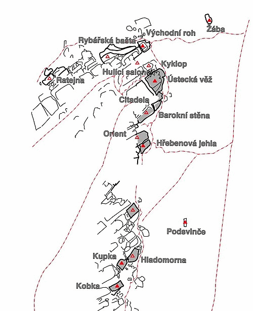 Skalní objekty i výstupy jsou nyní řazeny zleva doprava, tedy směrem od Hřenska k Děčínu. Přibližně desetikilometrový pás stěn mezi Hřenskem a Děčínem je pro větší přehlednost rozdělen do 22 podoblastí. Každá z nich je opatřena stručnou úvodní charakteristikou (výtah zní je uveden v hlavičce tohoto průvodce), popisem přístupu, přístupovou mapou a i podrobným plánkem sektoru a nákresem cest. Uvedeny jsou také GPS souřadnice. Vše je doplněno o krásné fotografie napříč celou oblastí.