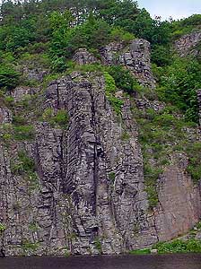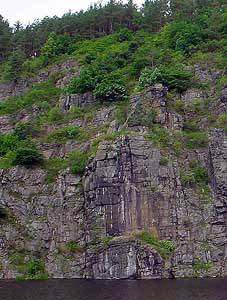 Nádherně položené skály na břehu přehradní nádrže. Těžilo se zde pouze na zadním okraji skal. Spíše lehčí lezení po oblých chytech, uplatní se občas i vklíněnec, i když cesty jsou převážně odjištěné (nýty, borháky, kruhy) a vybaveny slaňáky. Najdou se i cesty po vlastním jištění. Jsou to oblíbené skály s cestami až 40 m dlouhými, svítí sem do odpoledne (JV, J). V zimě je přehrada upuštěná asi o 1,5 m níž, nástupy jsou pohodlnější a masivy se dají obcházet podél vody. V největších vedrech je tu dobré koupání.